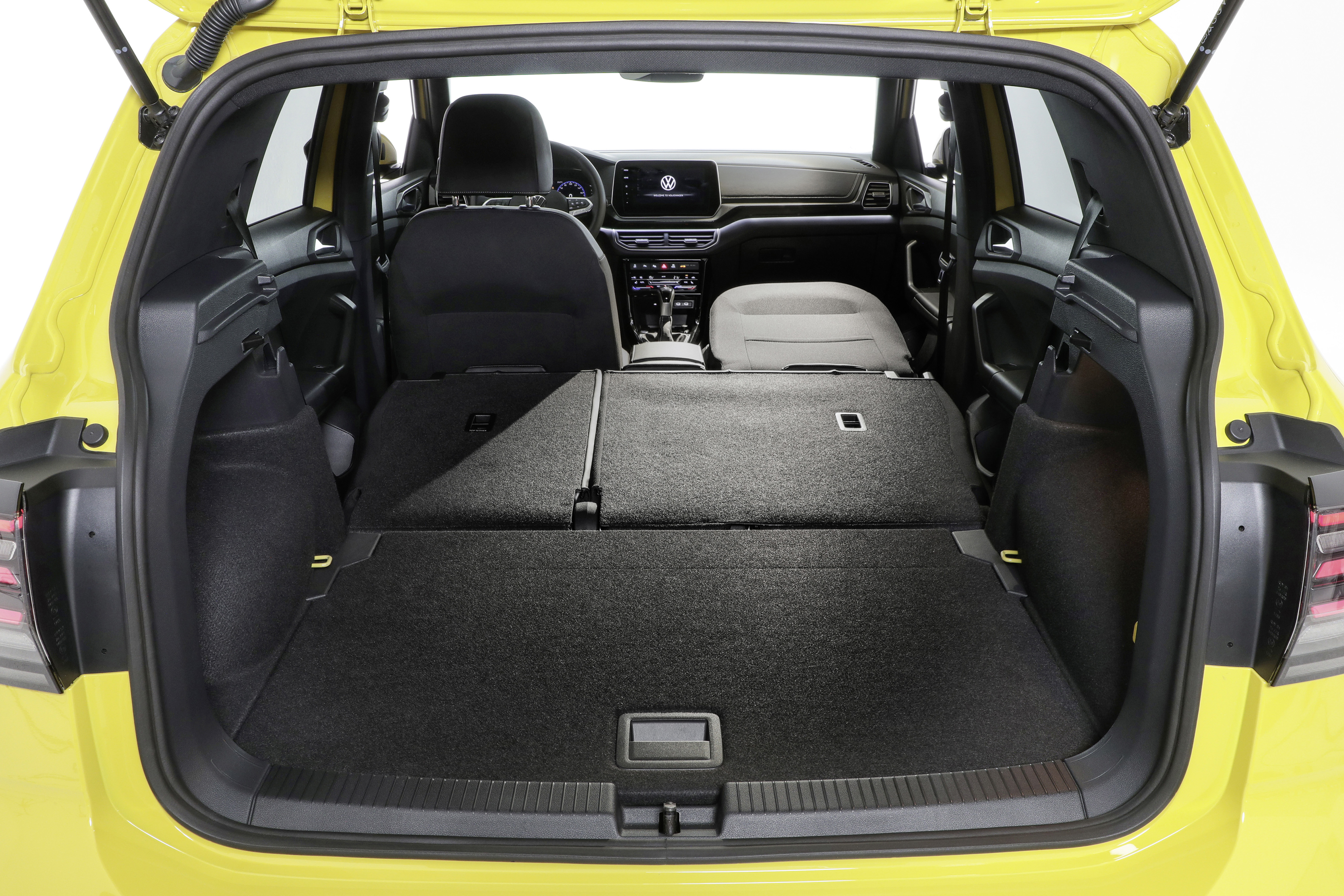 När alla platser är upptagna erbjuder T-Cross en lastvolym på mellan 385 och upp till 455 liter när den lastas upp till baksätets höjd. När baksätet är nedfällt (delat 60:40) bildas en plan lastyta med en förvaringsvolym på upp till 1 281 liter (lastat upp till höjden på framsätenas ryggstöd). Dessutom är ryggstödet på passagerarstolen fram fällbart som standard från och med utrustningsversionen Life. Den genomgående lastytan bakifrån och framåt är då 2 398 mm lång.