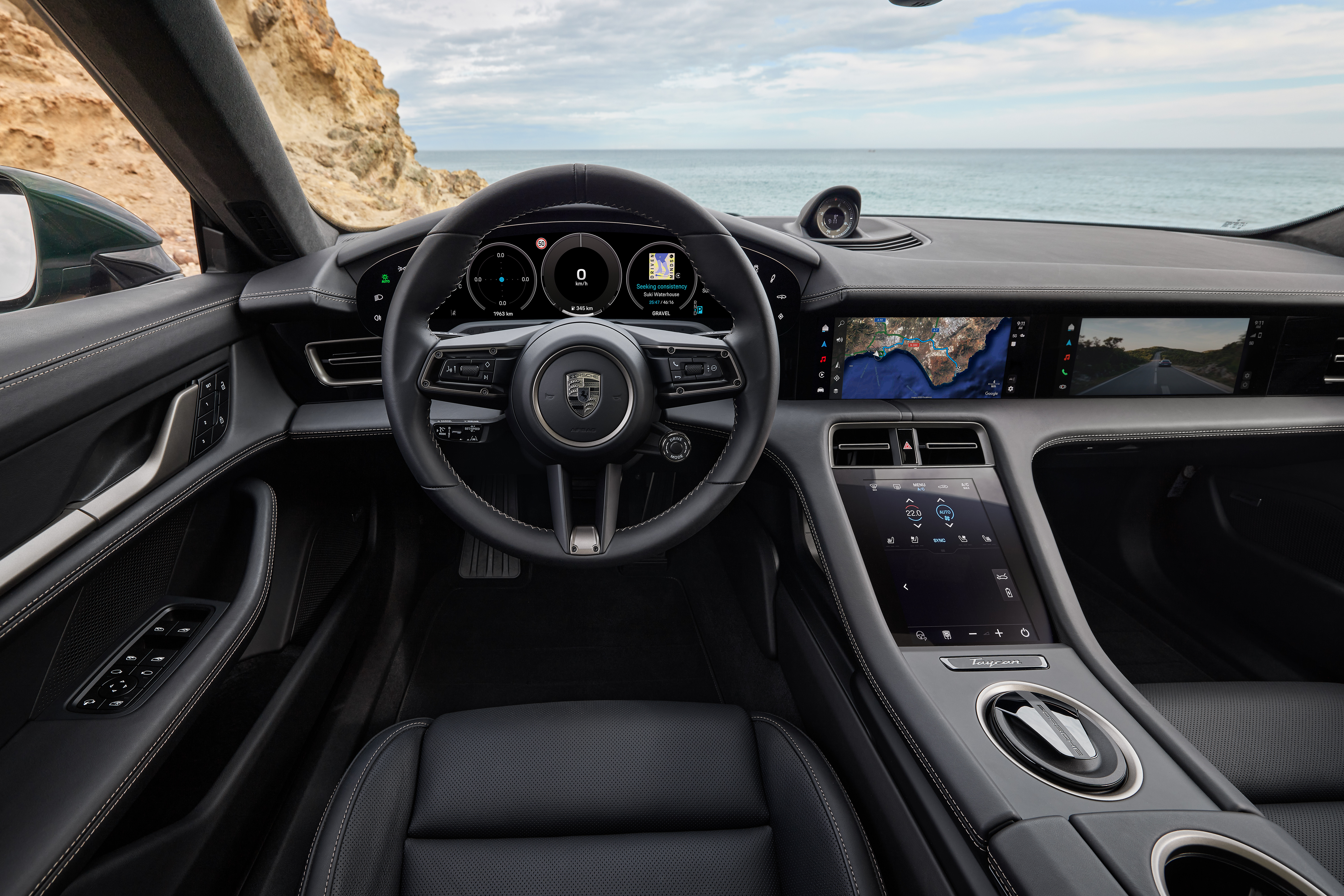 Kombiinstrumentet, mittdisplayen och passagerardisplayen (tillval) har ett optimerat användargränssnitt med ytterligare funktioner. Mode Switch på ratten är nu standard. För Taycan-modeller utrustade med Sport Chrono-paket och Performance Battery Plus finns det en särskild push-to-pass-knapp på Mode Switch-reglaget.