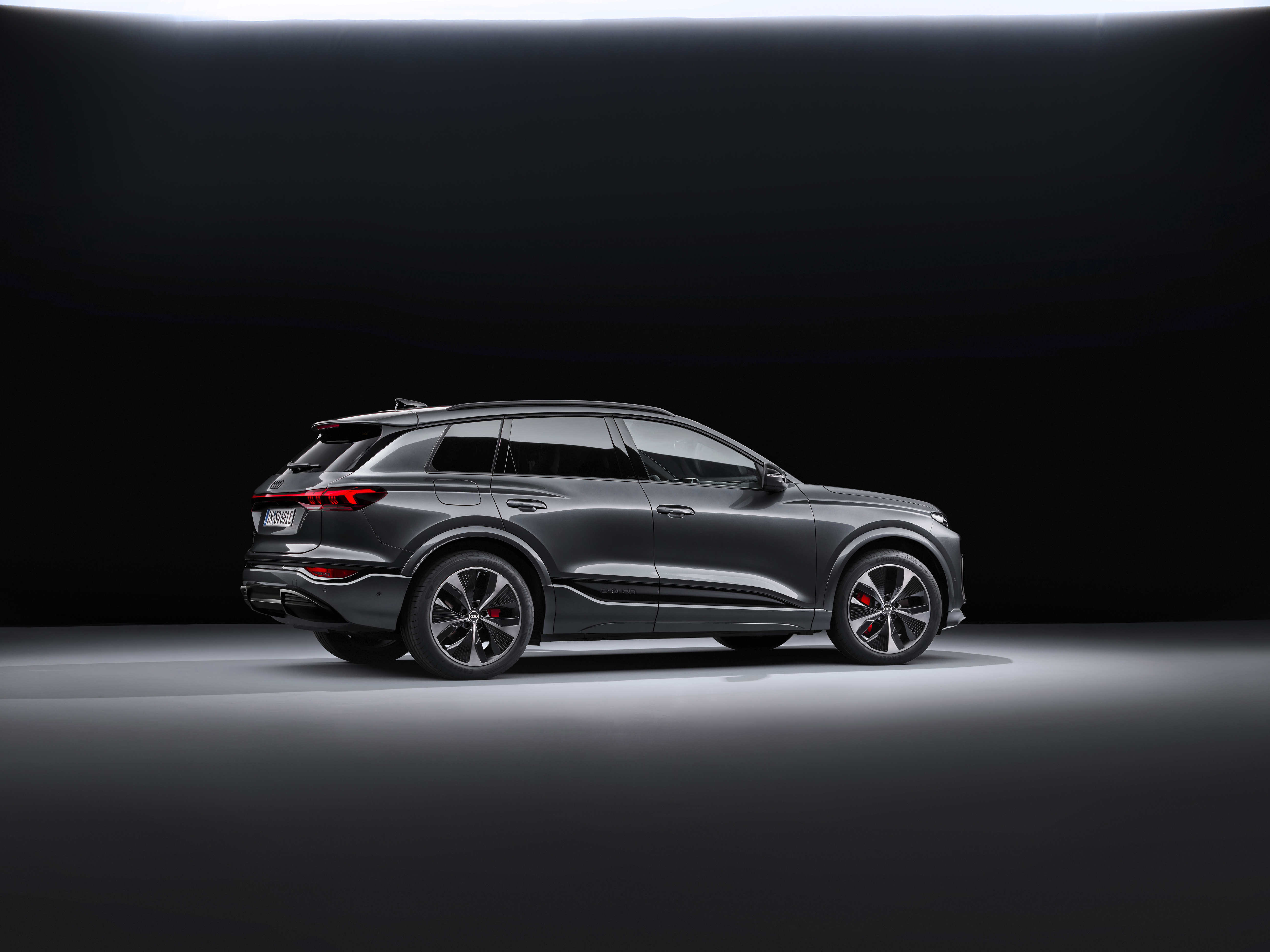 Med en längd på 4 771 millimeter, bredd på 1 993 millimeter och höjd på 1 648 millimeter bjuder Audi Q6 e-tron på maximalt utrymme, komfort och användbarhet i vardagen. Axelavståndet på 2 899 millimeter ger gott om benutrymme i den andra sätesraden och tillräckligt med plats för fem passagerare och bagage. Audi Q6 e-tron har perfekta proportioner tack vare Premium Platform Electric. Förhållandet mellan långt axelavstånd och mycket korta överhäng utgör grunden för den välkända kraftfulla och dynamiska designen på Audis Q-modeller där Audi Q6 e-tron visar upp en vidareutveckling av det e-tron-specifika designspråket.