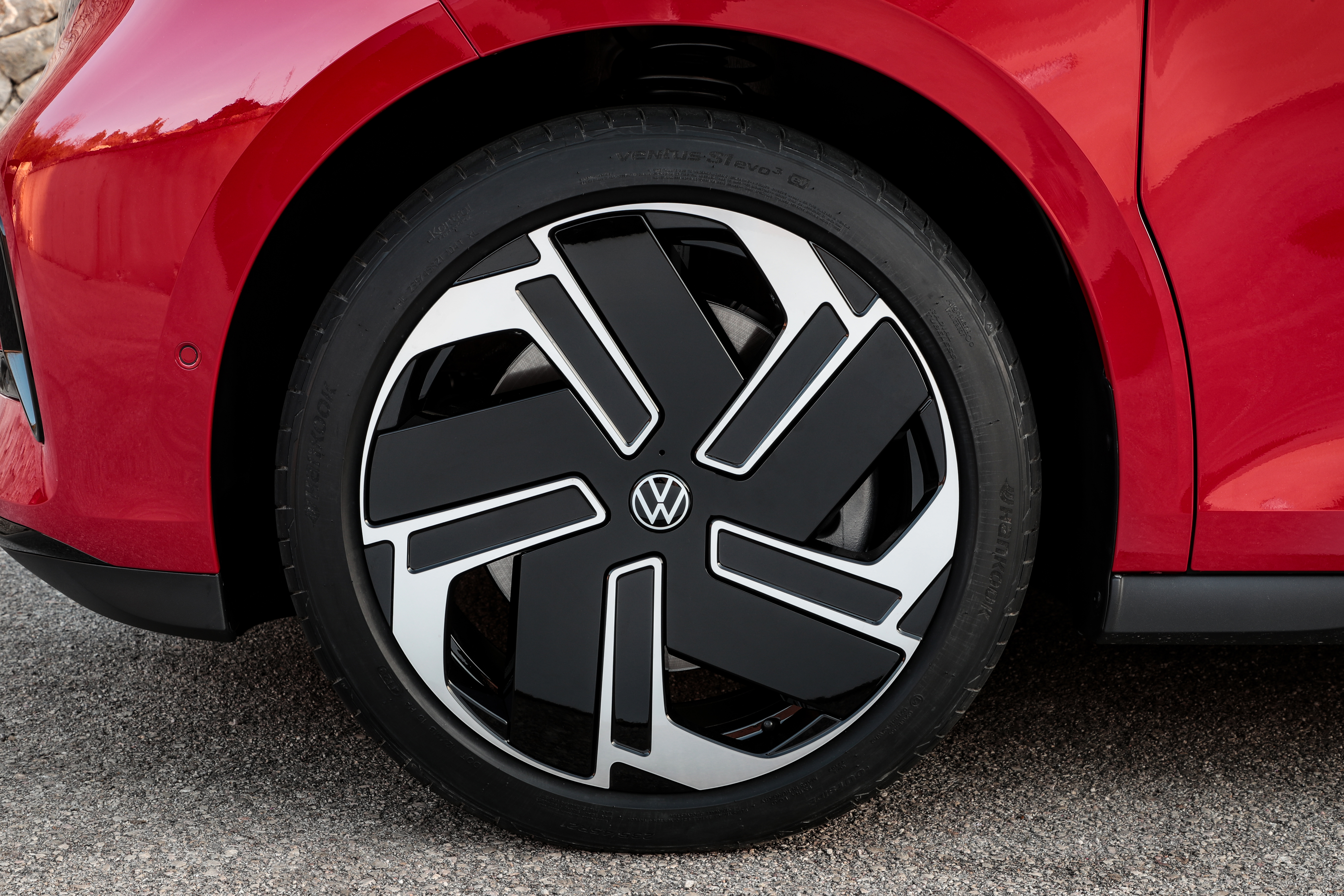 GTX exteriör. ID. Buzz GTX kännetecknas av en unik frontdesign. Stötfångaren i GTX-design med svart luftintagsgaller i bikakemönster och nya luftstyrningselement på sidorna ger bilen ett dynamiskt och distinkt utseende. Det nydesignade varselljuset är integrerat på sidorna av stötfångaren med två LED-trianglar ovanpå varandra i form av ett pilhuvud. Alla karossdetaljer som det nya luftintagsgallret, luftstyrningselementen, GTX-inskriptionen och ytterbackspegelkåporna är svarta i högblankt utförande. Dessutom ingår den nya 19-tums lättmetallfälgen Venlo i ID. Buzz GTX standardutrustning. Utbudet av GTX-fälgar kompletteras av två nya 21-tums lättmetallfälgar med beteckningarna Caracas (svart) och Townsville (svart med diamantslipad yta) och erbjuds som tillval. ID. Buzz GTX levereras med IQ.LIGHT LED-matrix strålkastare som standard.