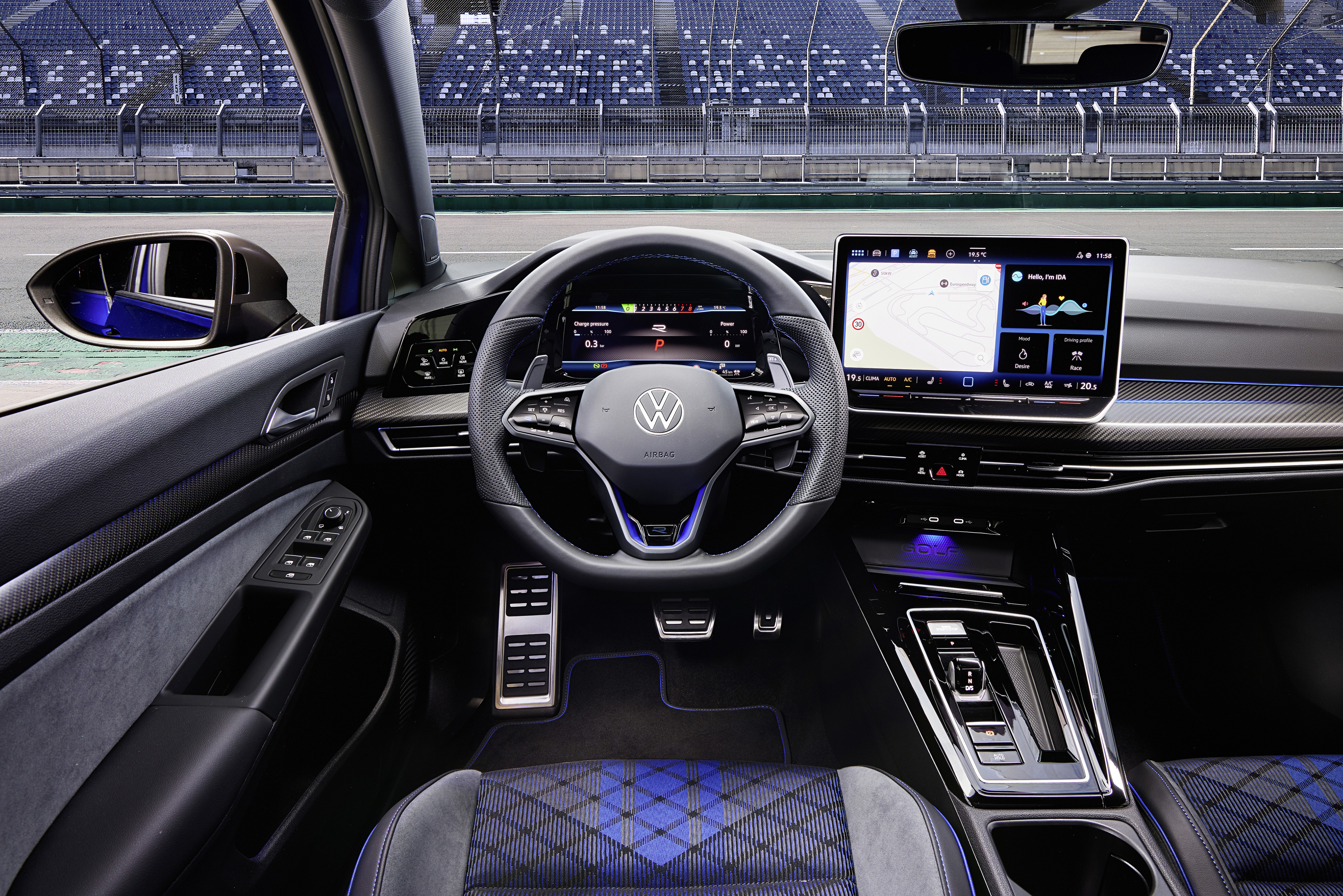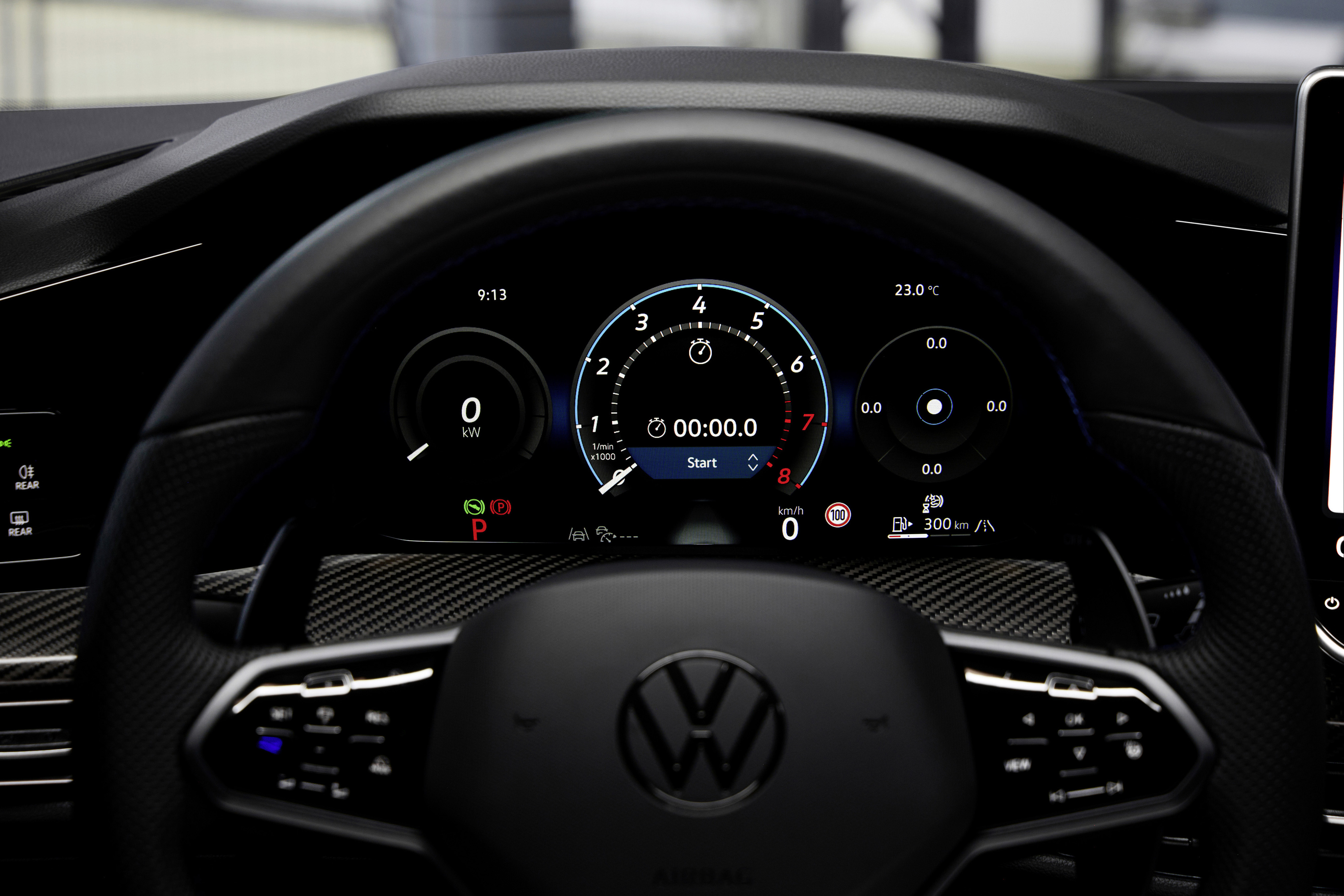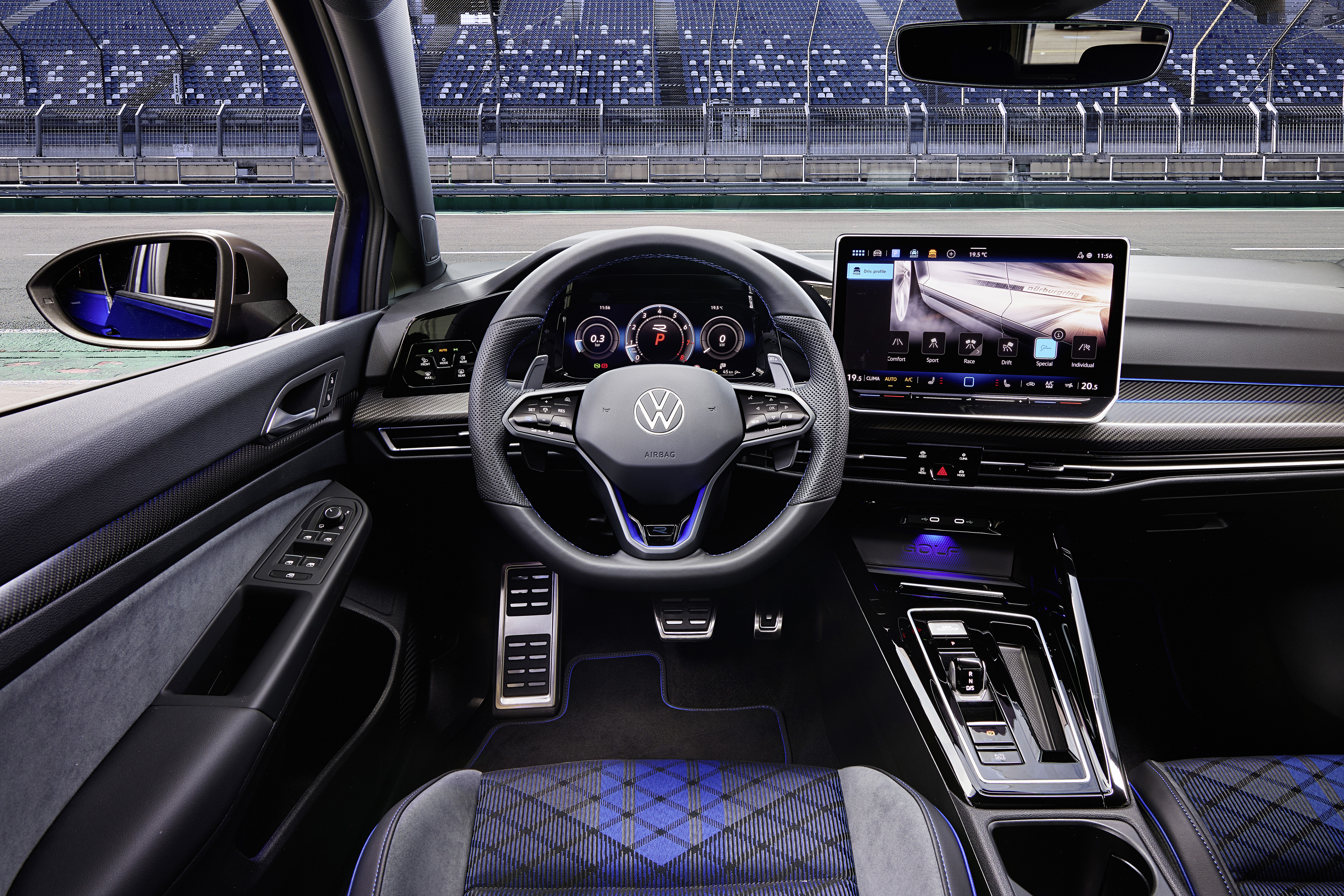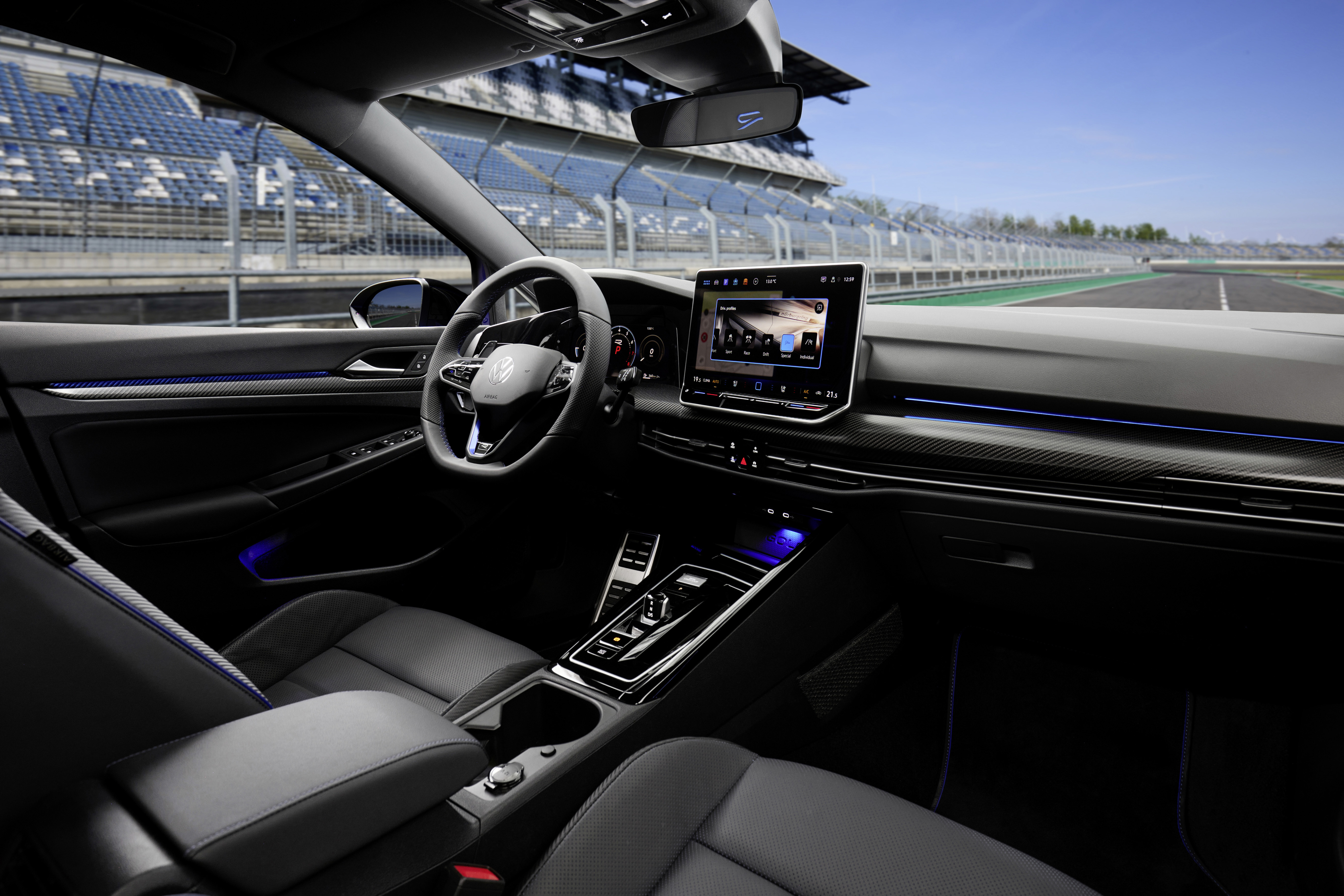 Golf R-versionerna är som standard utrustade med den förbättrade digitala instrumenteringen Digital Cockpit Pro (displaydiagonal: 10,25 tum/26 cm). Förutom de klassiska vyerna som finns i andra Golf-versioner erbjuder Digital Cockpit Pro i Golf R en ”Sport Skin”-vy med en central rund varvtalsmätare i R-specifik design samt ”R-View” med horisontell varvtalsmätare, som sträcker sig från 0 till 8 (motsvarande 0 till 8 000 varv/minut).