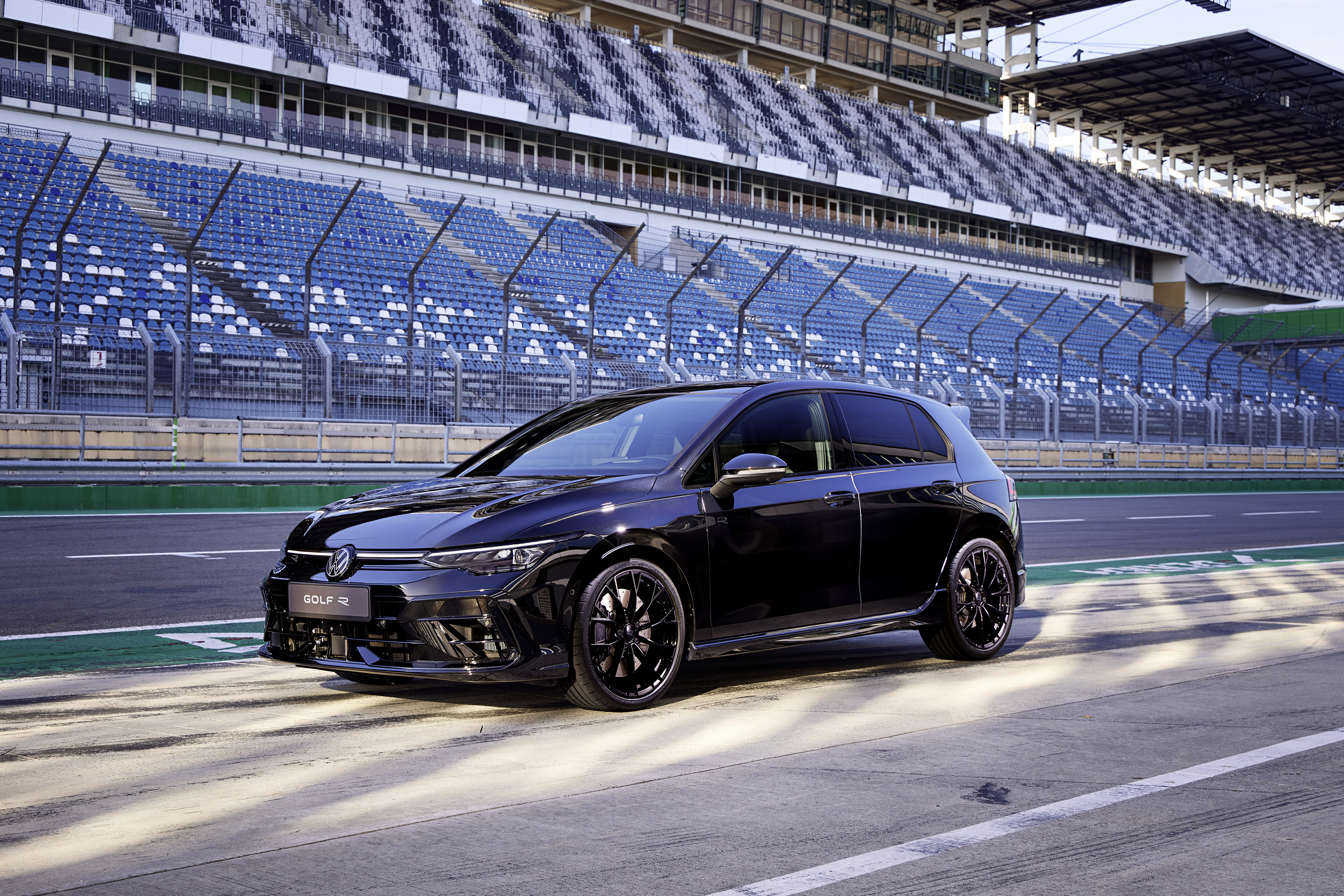 Golf R Black Edition är en exklusiv specialversion som också kommer att erbjudas längre fram. Den har en sofistikerad mörk look: med mörkare VW-emblem och R-logotyper, svarta R-bromsok med mörk R-logotyp, svarta 19-tums Estoril-fälgar och svarta ändrör. De mörktonade IQ.LIGHT LED Matrix-strålkastarna ingår också som standard. I utrustningen ingår även R-Performance-paketet, som är tillval för andra versioner.