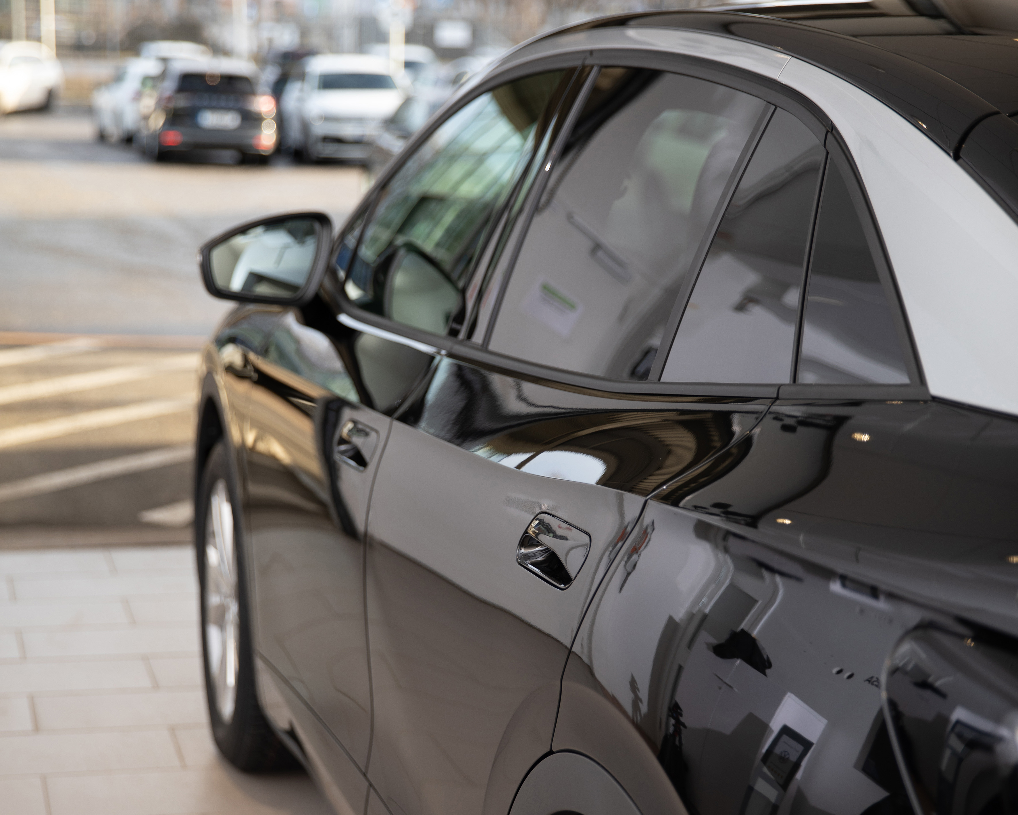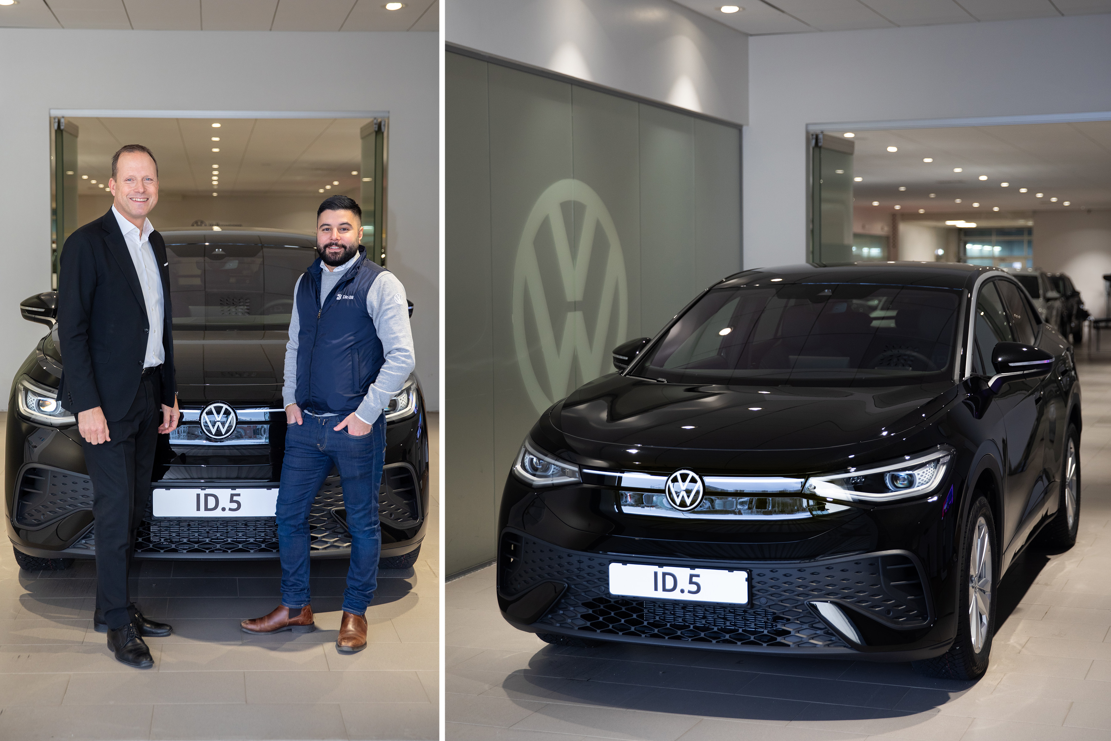 Det är en skinande svart ID.5 som väntar i leveranshallen. Säljaren David Skännestig är redo att lämna över bilnyckeln till familjen som ska leasa bilen. Tidigare har kunden leasat en bensindriven Volkswagen Tiguan, men väljer nu att ställa om till el och köra in i det nya året med en ID.5.