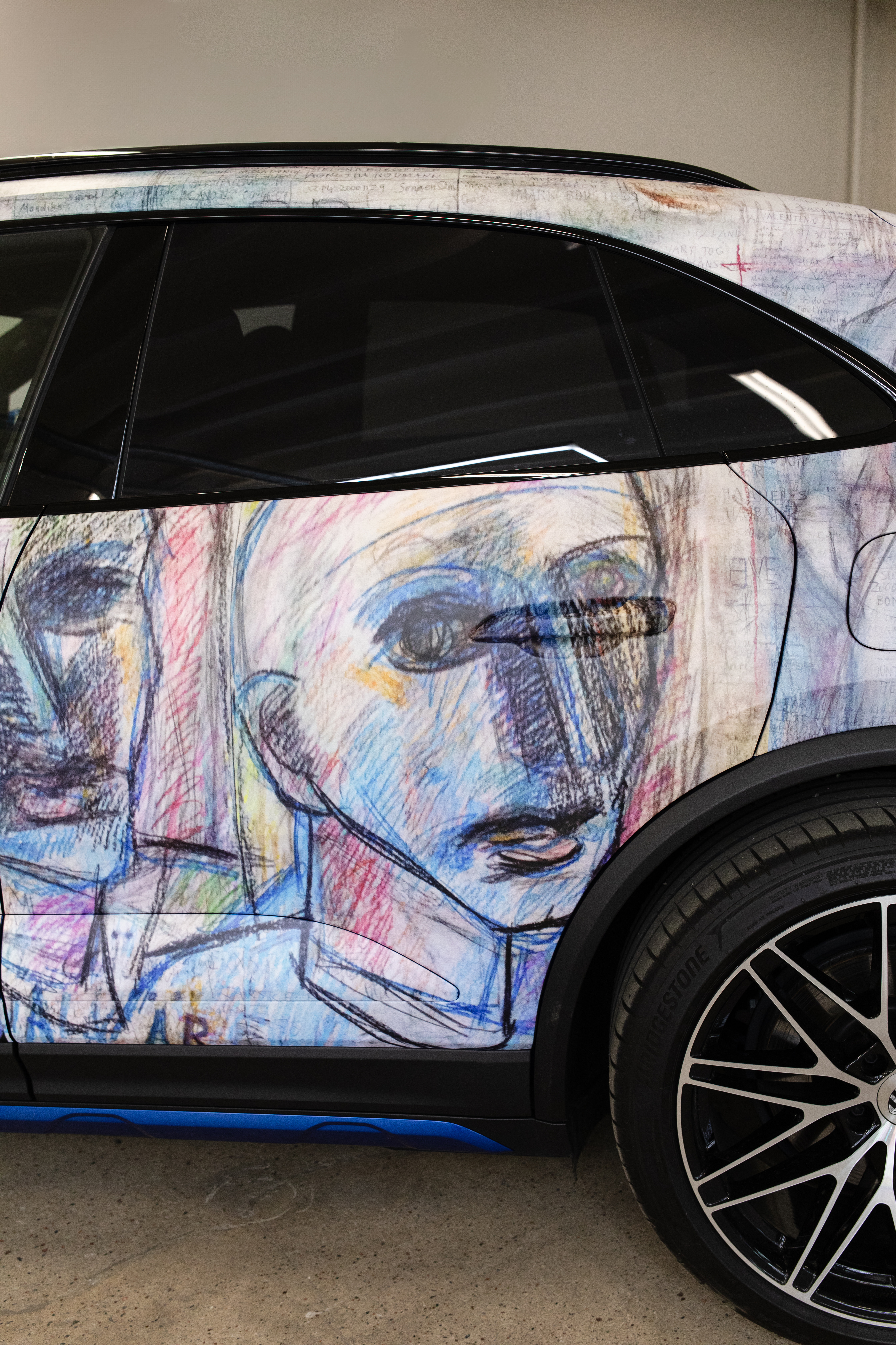 Konstbilen som Anders Krisár skapat för Porsche Sverige och Stockholm Art Week består av en helt elektrisk Porsche Macan som täckts med ett collage av teckningar av hans bortgångne pappa Mårten Havalai – ett djupt personligt projekt som konstnären beskriver som en hyllning till honom. Bilen blir på så vis en rörlig målarduk där teckningarna sträcker sig över karossen och förenar skissande med bilens skulpturala språk. Inne i bilen fortsätter upplevelsen med ett ljudverk komponerat av Krisár och framfört av en av Sveriges ledande pianister, Roland Pöntinen. Den inspelade pianokompositionen förvandlar interiören till en intim lyssningsplats och skapar ett mångbottnat möte mellan ljud, bild och rörelse.