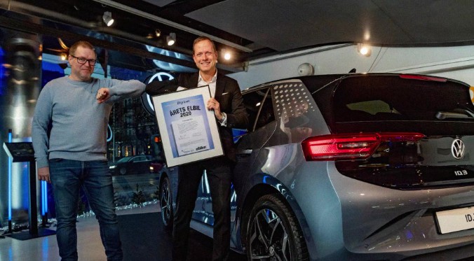 Sten Forsberg, chef för Volkswagen Sverige, mottog diplom när ID.3 utsågs till Årets Elbil 2020 av tidningen Elbilen i Sverige och konsumentorganisationen Elbil Sverige.
